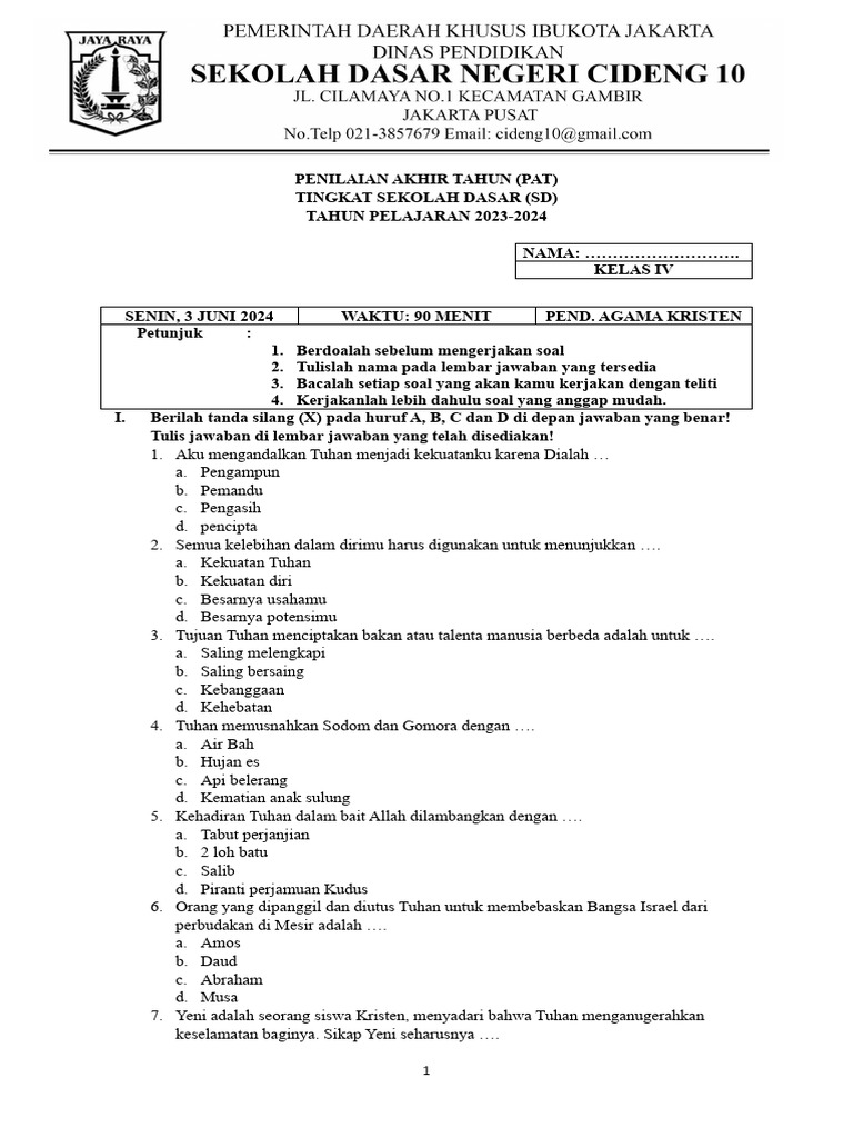 Pendidikan agama Kristen di tingkat Sekolah Dasar (SD), khususnya kelas 4 semester 1, memiliki peran krusial dalam menanamkan fondasi iman yang kuat pada diri anak-anak. Di usia ini, mereka mulai memahami konsep-konsep dasar keagamaan, cerita-cerita Alkitab, serta nilai-nilai moral yang menjadi pedoman hidup seorang Kristen. Oleh karena itu, evaluasi melalui contoh soal menjadi penting untuk mengukur pemahaman mereka dan memastikan bahwa pembelajaran berjalan efektif.