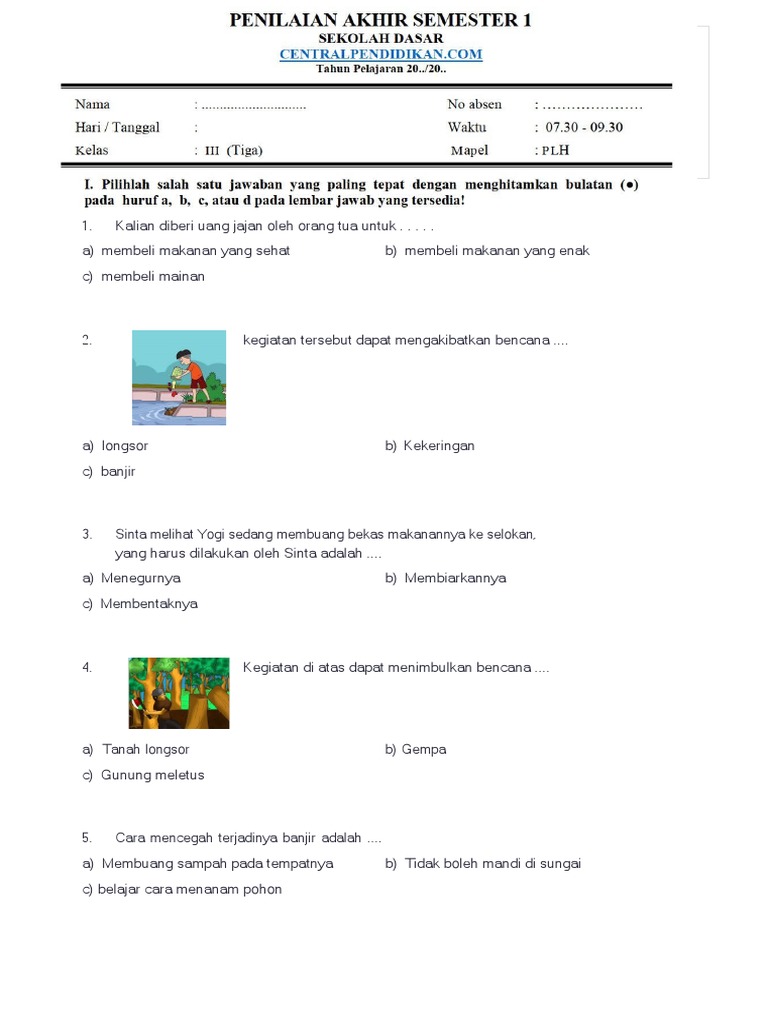 • "Kumpulan soal PLH kelas 3 SD penilaian tengah semester ganjil"