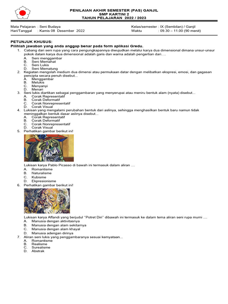 Seni budaya merupakan mata pelajaran yang unik karena tidak hanya berfokus pada hafalan teori, tetapi juga pada pengembangan kreativitas, apresiasi, dan pemahaman mendalam tentang warisan budaya. Soal essay dalam ujian seni budaya kelas 9 semester 1 menjadi sarana penting untuk mengukur sejauh mana siswa telahInternalisasi konsep-konsep yang dipelajari dan mampu mengaplikasikannya dalam pemikiran kritis dan ekspresi pribadi.