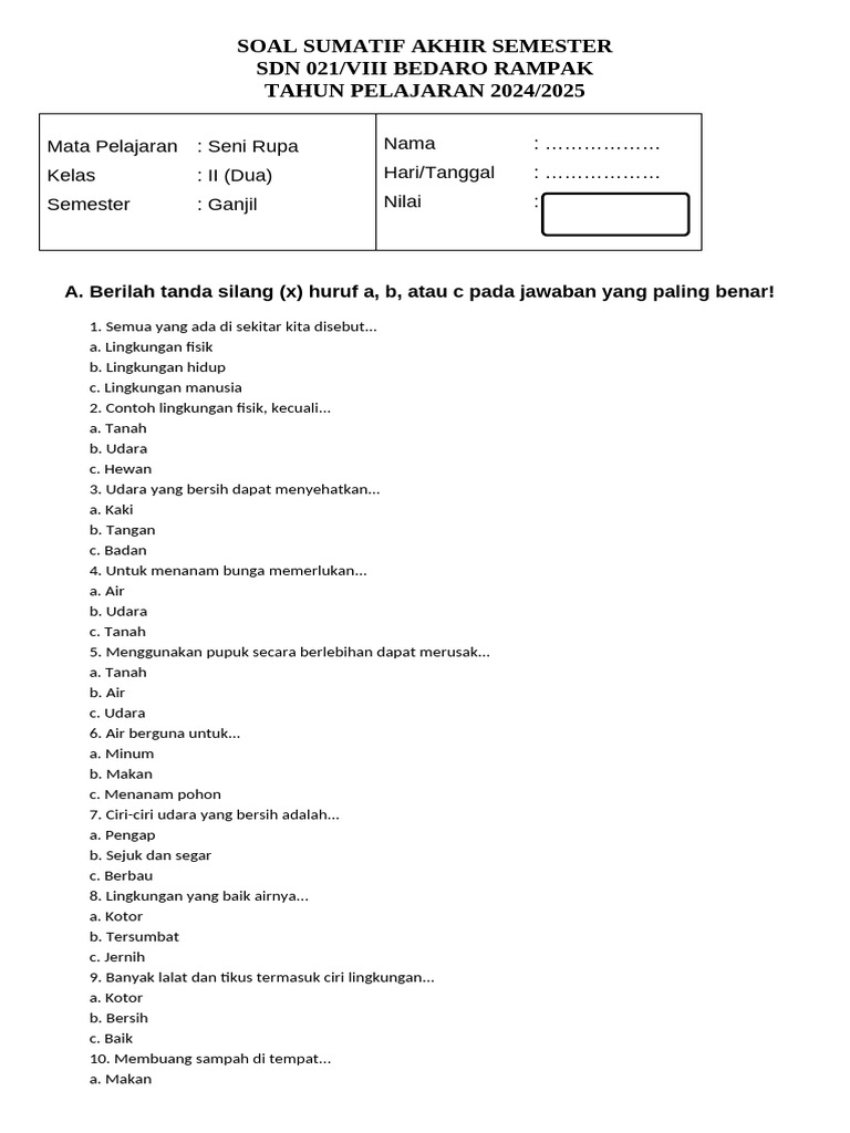 Artikel: Menggali Kesadaran Lingkungan Sejak Dini: Pembahasan Soal PLH Kelas 2 Semester 1